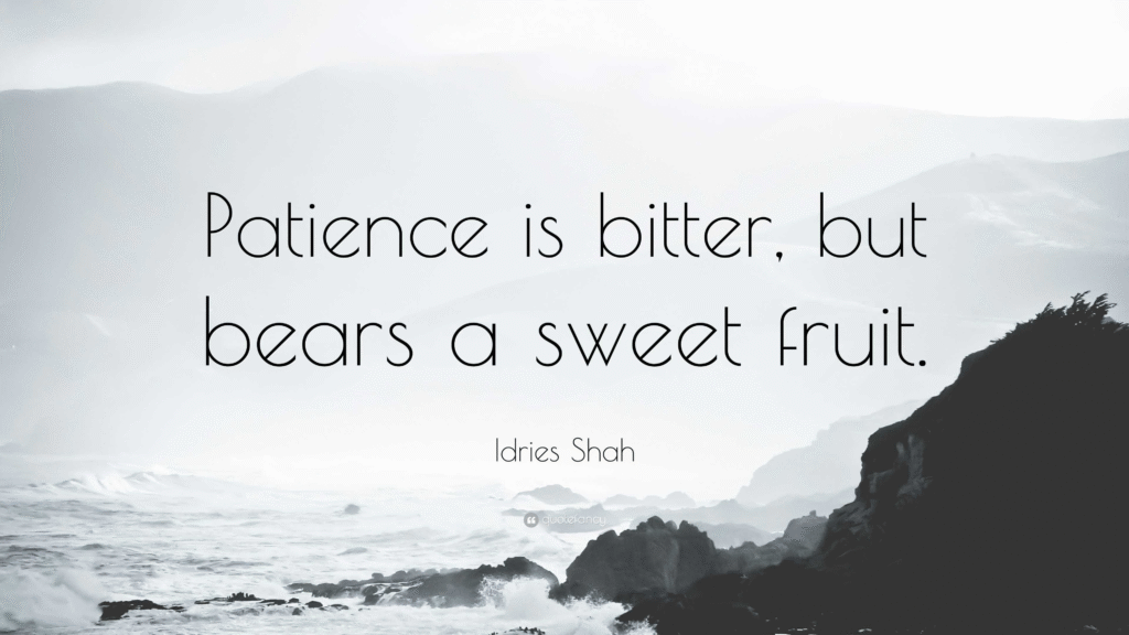 Some things are achieved only with time. In haste, we lose the fruits of our hard work with our own hands. Patience is the biggest key to success.